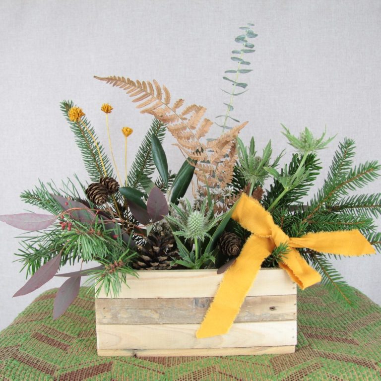 Aus klassischem Bindegrün, Trockenblumen und Naturmaterialien und inkl. Weihnachtsvorfreude.