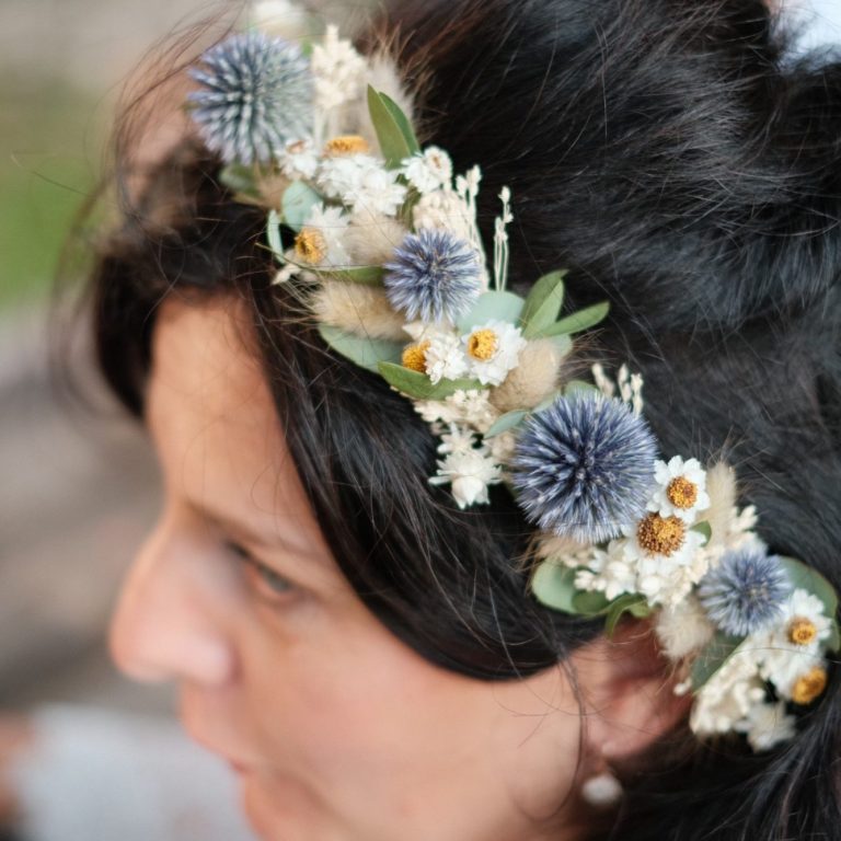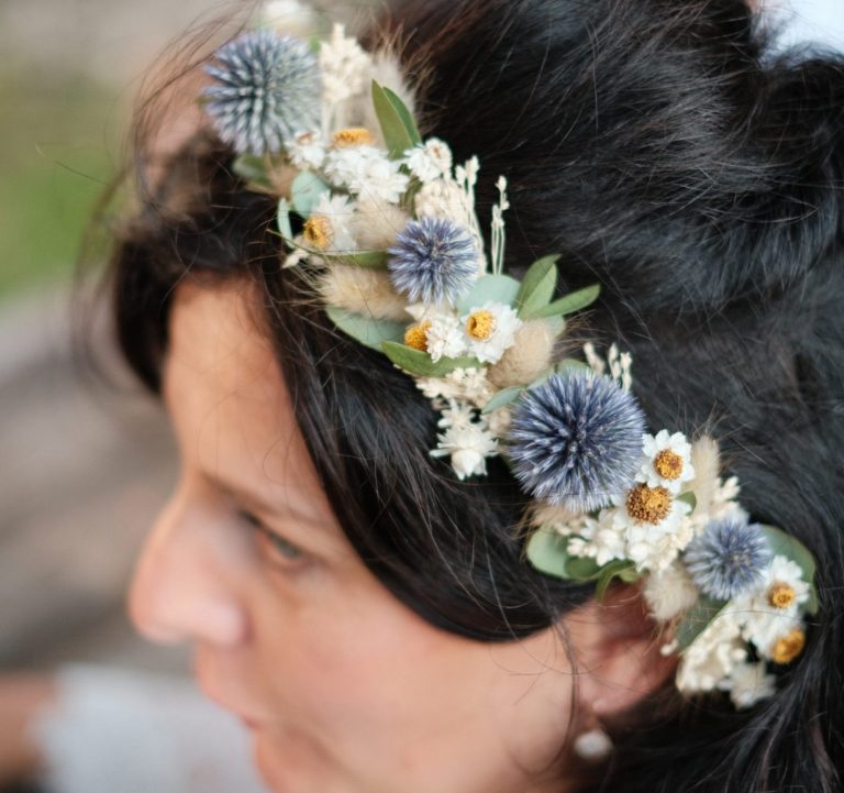 Ein haltbarer Haarkranz aus Trockenblumen – perfekt für deine Hochzeit oder für das nächste Sommerfest.