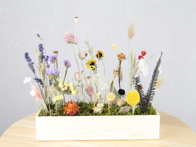 "Trockenblumenwiese in Holzkiste"